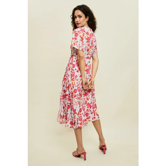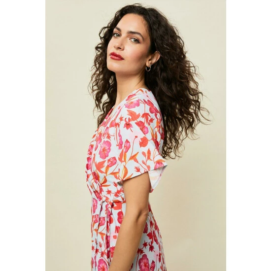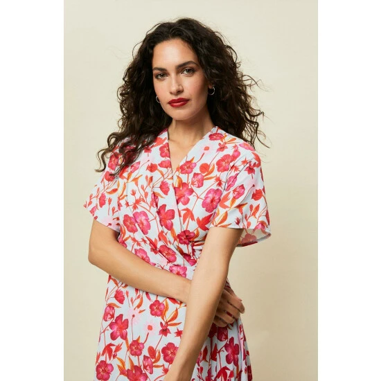 Part of our collaboration with British illustrator, Charlotte Hogg, where floral and feminine prints meet the shapes of the season. Charlotte uses a combination of watercolours and acrylics to hand-paint the prints, bringing you exclusive pieces that capture the beauty of the artist’s expressive work. This collection has been designed and made in the UK using more responsibly-sourced materials, and is perfect for your summer celebrations.Style: Red Floral Wrap Midi DressMade in the UKLength: Approx. 122cmFit: RegularIdeal for: DaywearDesign: Wrap