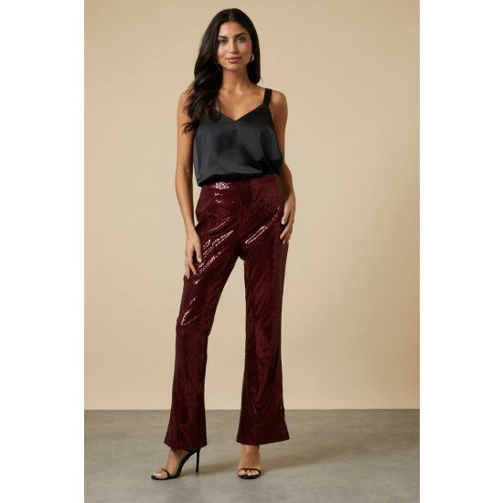 Refresh your wardrobe staples with new season trousers for every occasion. From chic wide leg designs to, to formal tapered suit trousers and versatile leggings. From work to weekend, these trousers have you covered.Style: Red Sequin Bootcut TrouserIdeal for: Occasion