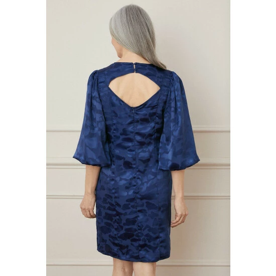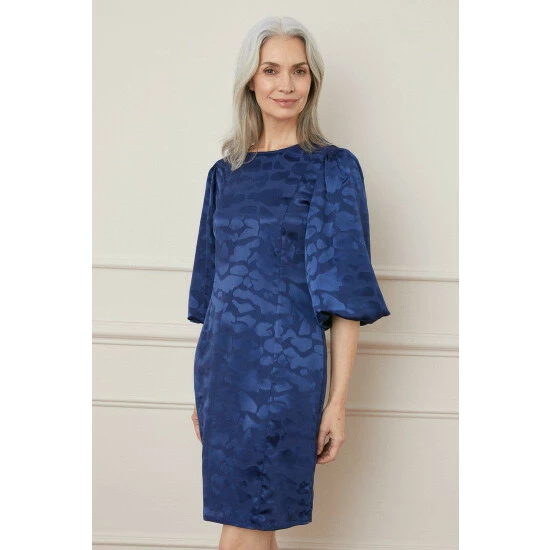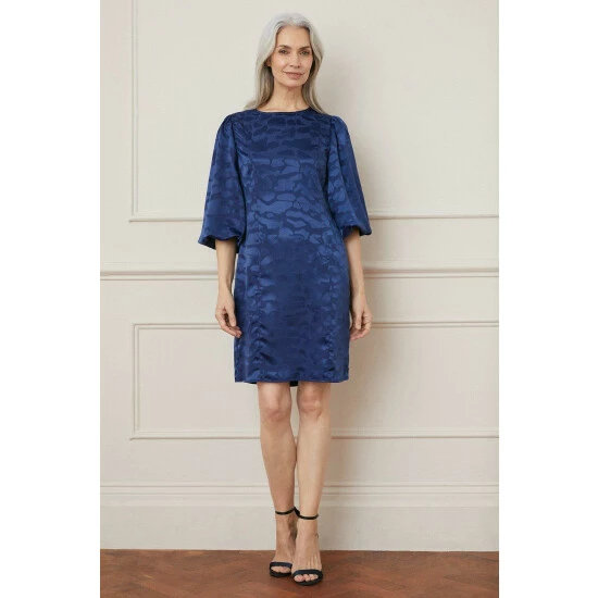 Satin Viscose Jacquard Balloon Sleeve Shift Dress