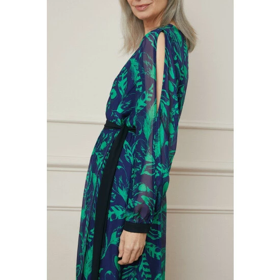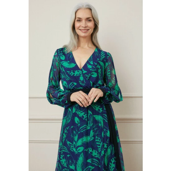 Wallis Silk Mix Feather Print Split Sleeve Wrap Midi Dress For Female