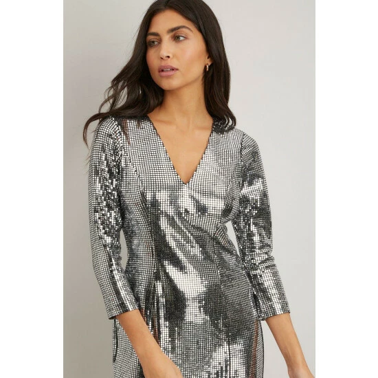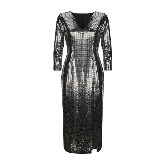 93% Polyester, 4% Elastane, 3% Metallised fibre. Machine Washable. Model Wears UK Size 10.