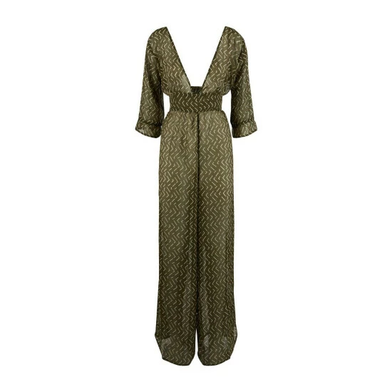 Heading to the beach? Do it in style. Our holiday-ready styles will have you dreaming of your next trip – from chic kaftans and cool coverups to must-have swimwear and versatile shoes, these are the pieces your suitcase has been waiting for.Style: South Beach Green Geo Print Sheer JumpsuitFit: LooseIdeal for: CasualDesign: Elastic Waist Back