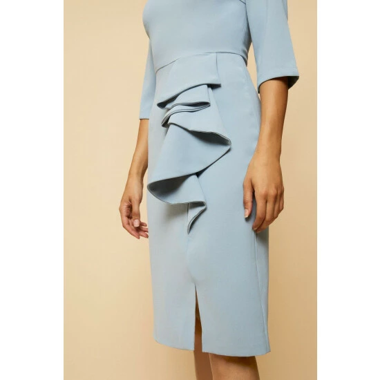 Tailored Ruffle Detail Midi Dress