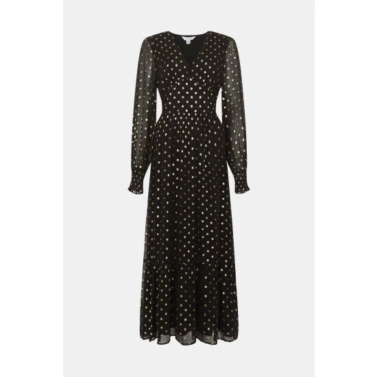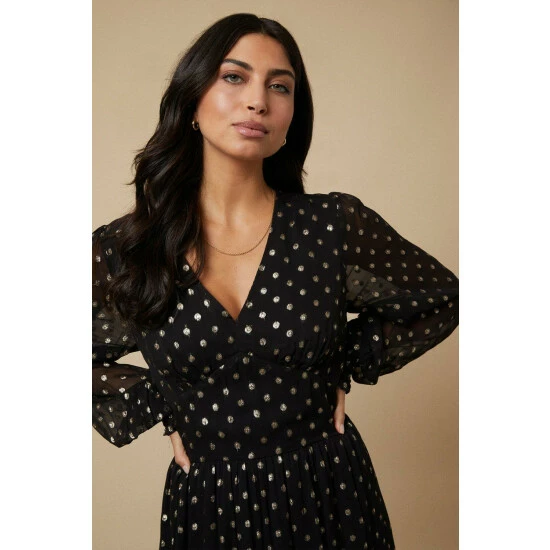 Just say dress. From sophisticated workwear styles to show stopping event-ready designs, our new season dresses have you covered for any and all occasions. Discover unique prints, elegant silhouettes and versatile styles. Whatever you’ve got in the diary, we’ve got the dress for it. Shop versatile Midi dresses, elegant Maxi dresses and everything in between.Style: Tall Black Spot Foil Shirred Midi DressIdeal for: Daywear