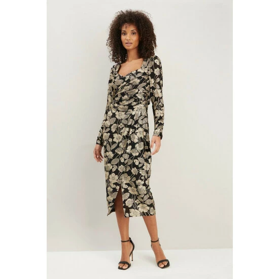 Tall Gold Foil Knitted Body Con Dress