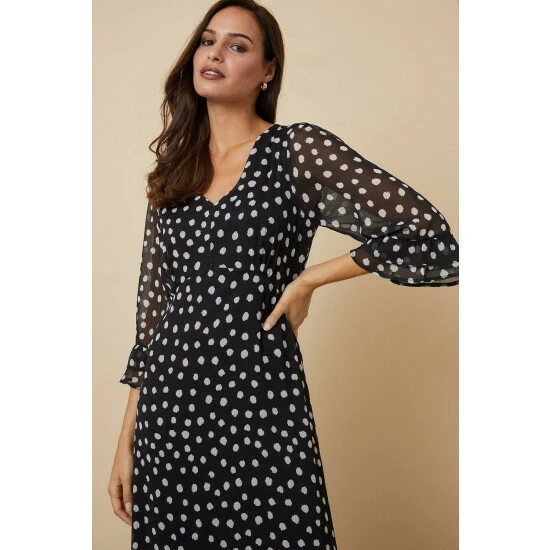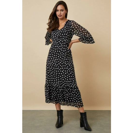 Just say dress. From sophisticated workwear styles to show stopping event-ready designs, our new season dresses have you covered for any and all occasions. Discover unique prints, elegant silhouettes and versatile styles. Whatever you’ve got in the diary, we’ve got the dress for it. Shop versatile Midi dresses, elegant Maxi dresses and everything in between.Style: Tall Mono Spot Ruffle Sleeve Tea DressLength: Approx. 126cmFit: RegularIdeal for: DaywearDesign: Ruffle
