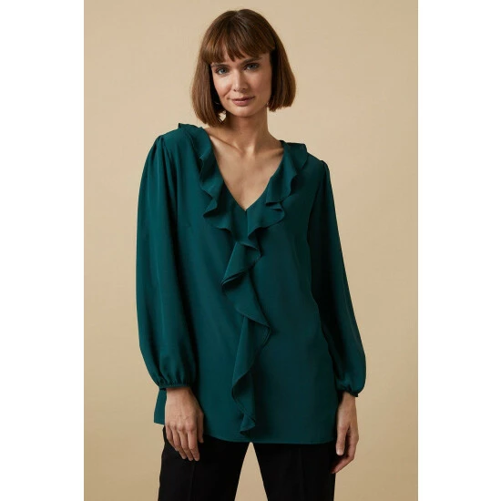 Complete the look with our new season tops. From casual camis to smart office tops to glam ruffled evening styles, we’ve got you covered for whatever you have in the diary. Make a style statement with puff sleeves and bold prints, or keep things classic with a chic cami or ruffles top. Intricate embellishments and fine prints are set to bring your everyday wardrobe to life, whilst a variety of fits are designed to flatter.Style: Tall Plain Ruffle Front 3/4 Sleeve TopIdeal for: Daywear