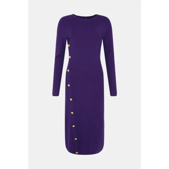 Tall Purple Button Detail Knitted Dress