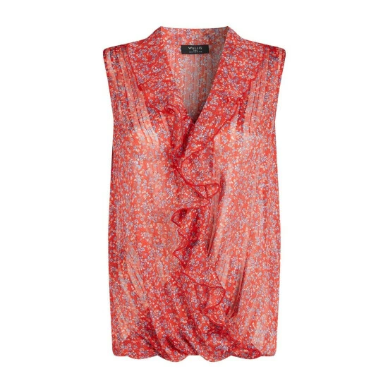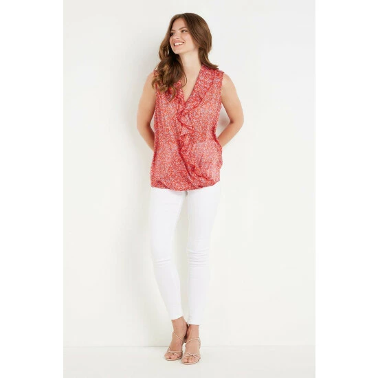 Tall Red Ditsy Metallic Sleeveless Ruffle Top