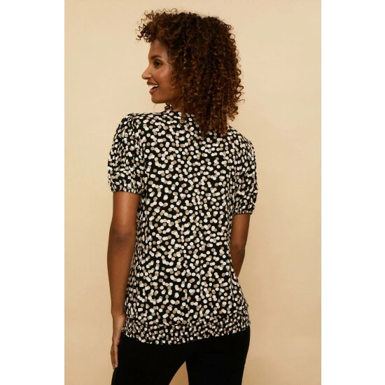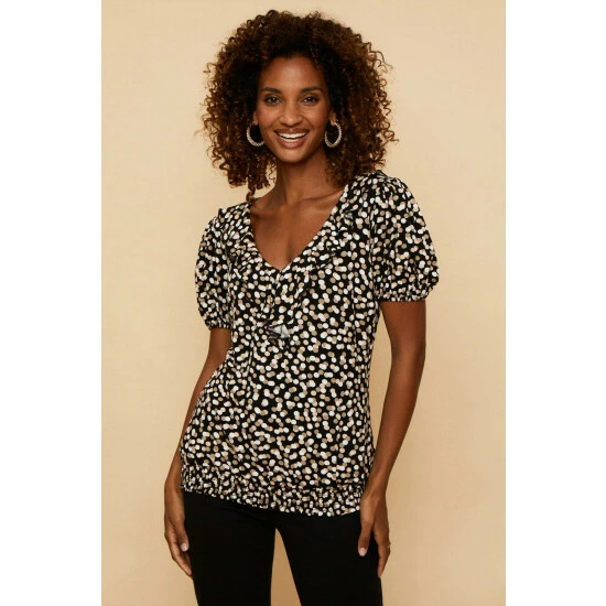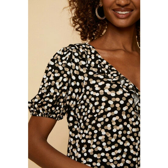 Taupe Spot Jersey Ruffle Top