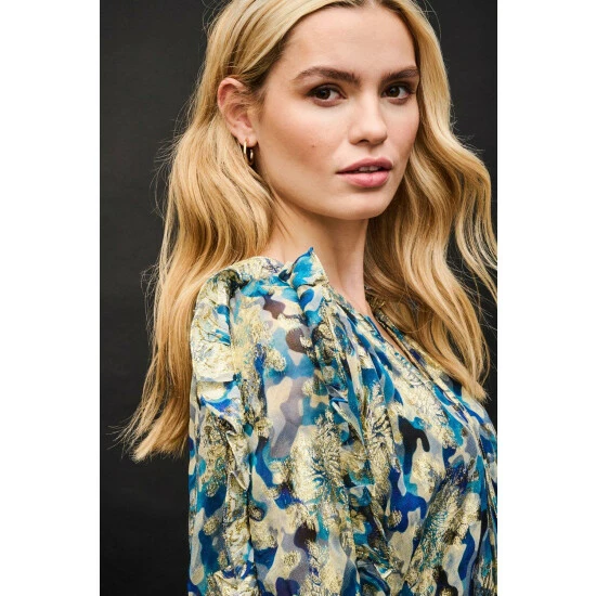 Part of W, a carefully curated collection of luxe, trend-lead pieces. W is an elevated selection of essential styles. An extra special top for the season ahead, this features voluminous sleeves, metallic god and an intricate print. Just pair with denim and heels for easy smart casual style. Main: 83% Viscose, 17% Metallised Fibre. Machine Washable. Model Wears UK Size 10.