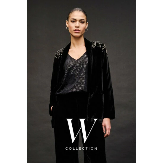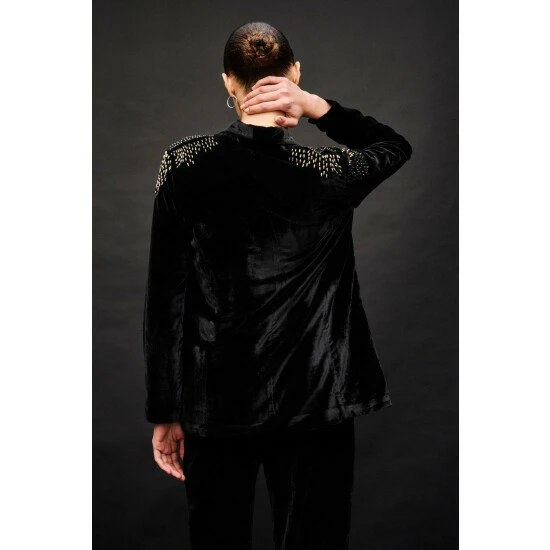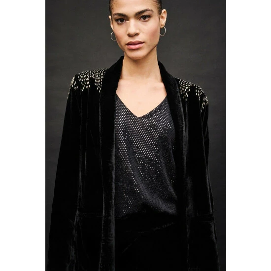 Part of an elevated edit of all things Autumn Winter style. This luxurious embellished blazer is a must-have for the festive season. It’s made of super soft velvet, with intricate shoulder detailing that has been hand beaded – making each piece extra special. Cloth Comp: 100% Polyester. Lining 100% Viscose. Machine Washable. Model Wears UK Size 10.